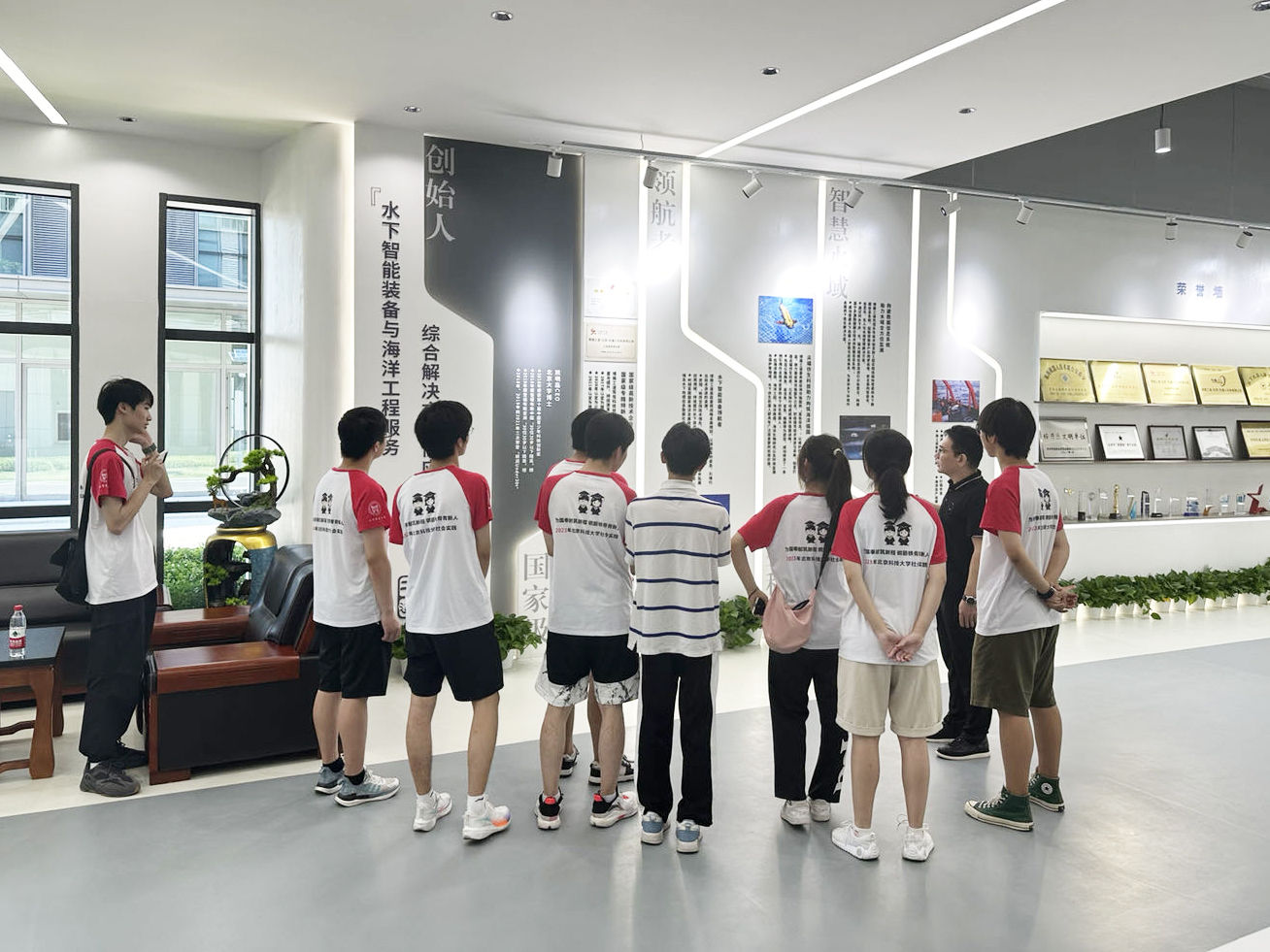 7月25日,北京科技大學(xué)暑期社會(huì)實(shí)踐團(tuán)來(lái)到博雅工道北京公司進(jìn)行參觀交流。活動(dòng)開(kāi)始,我公司的市場(chǎng)部負(fù)責(zé)人和人事行政總監(jiān)帶領(lǐng)大家進(jìn)入展廳,向?qū)W生們簡(jiǎn)要介紹了公司的發(fā)展歷程,回顧了我們?cè)谒聶C(jī)器人領(lǐng)域的成長(zhǎng)和取得的成就。