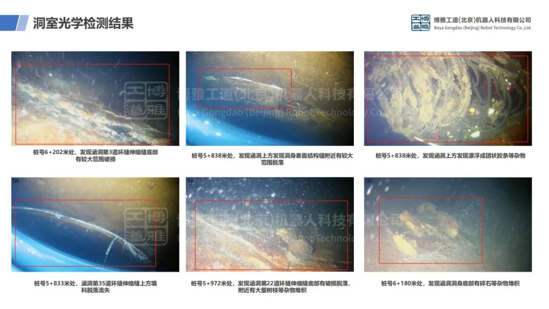 2023 年,博雅工道參與了團(tuán)成湖至第九水廠(chǎng)輸水工程管道檢測(cè)的工作。此次檢測(cè)利用水下機(jī)器人,對(duì)團(tuán)九一期隧洞 9# 排氣閥井上下游約 400 米范圍管段進(jìn)行全覆蓋掃描,主要檢測(cè)隧洞的伸縮縫,對(duì)重點(diǎn)關(guān)注部位和異常部位進(jìn)行進(jìn)一步抵進(jìn)直觀(guān)檢查和激光尺掃描。