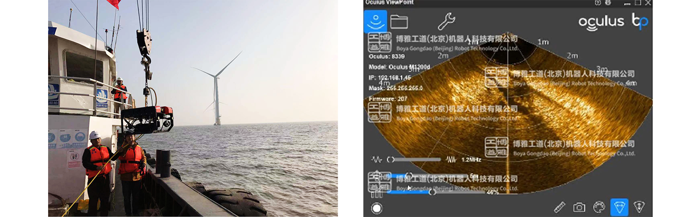2020 年 11 月,我公司應江蘇省風電龍頭企業(yè)邀請,為海上風電裝置進行整體的檢查維護工作,使用我司 ROV 及相應傳感器產品進行水下檢測,維護等工作。本次海上維護順利完成,獲得業(yè)主單位一致好評,為客戶和國家挽回難以估量的損失,創(chuàng)造了巨大的經濟和社會效益。
