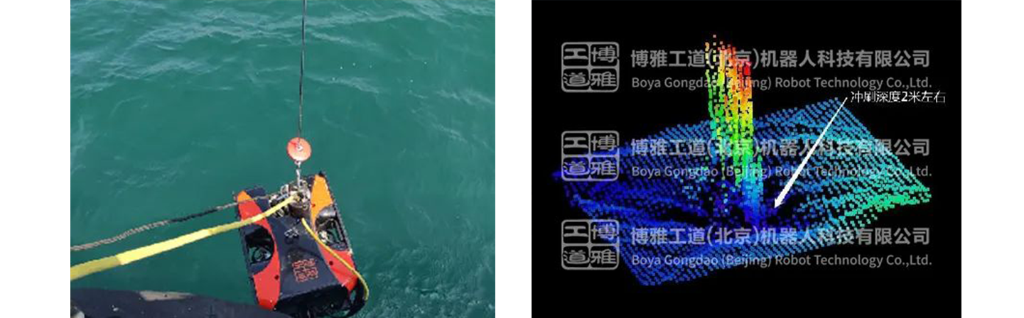 2021 年 4 月,我公司攜帶纜控無人潛航器 R1-45 通過水上攝像系統(tǒng)及前置多波束聲吶對青島海域的海纜的情況進行監(jiān)測,確認海纜是否存在斷裂以及確定位置等問題,對發(fā)現問題的地方進行定位,并進行駐足觀測,為之后維修提供科學依據。