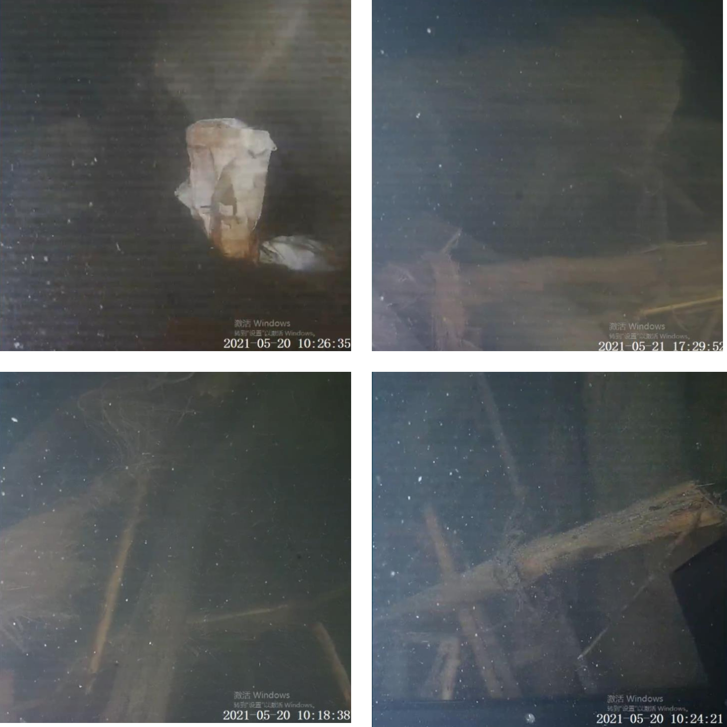 ROV搭載的高清攝像頭拍攝到的水下堆積物及銹蝕狀況