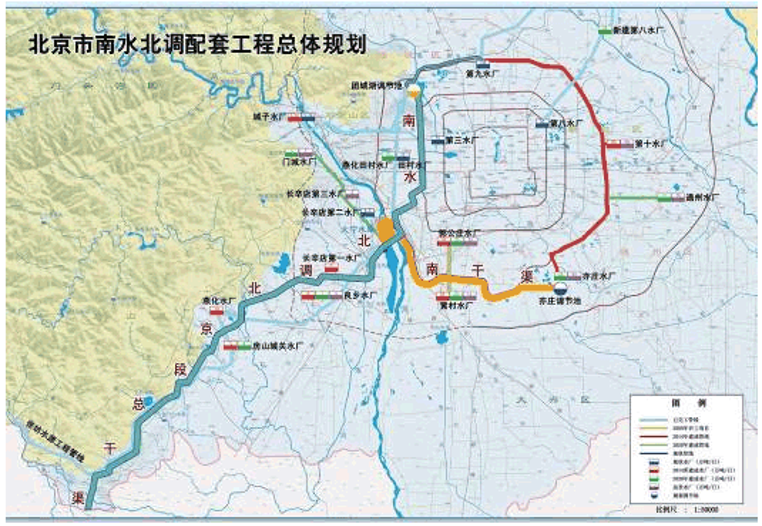 東干渠工程的實施對實現北京市多水源聯合調度,保證北京市中心城和新城主要水廠具備雙水源條件,保障首都的供水安全及可持續發展等方面具有重要意義。