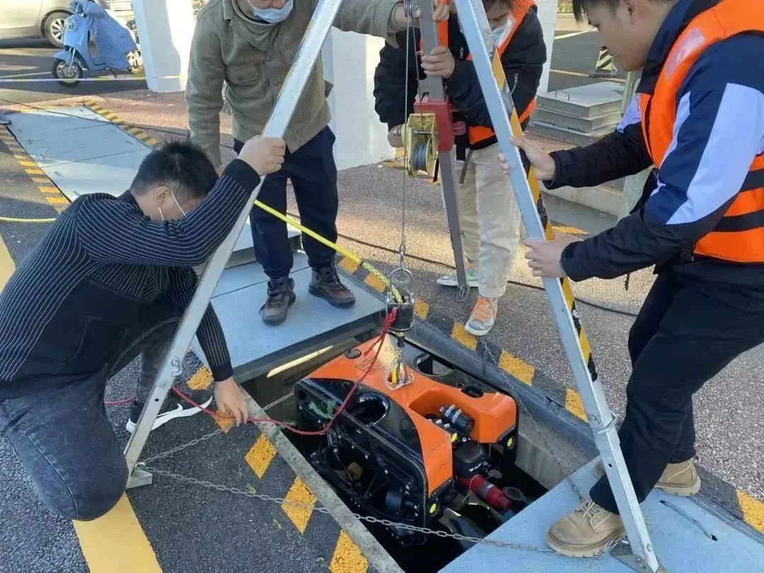 檢測使用的 R1-20Pro 水下機器人搭載水下高清攝像頭、前視多波束聲吶、管道聲吶、激光測量尺和噴墨示蹤裝置,共檢測了約 685 條環縫,總距離約為 10 公里。