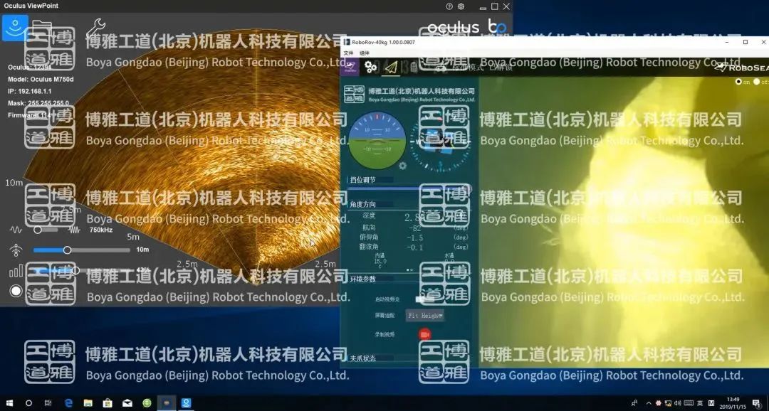 水下救援機器人 R1-45 搭載的攝像頭和聲吶采集到的現場圖像