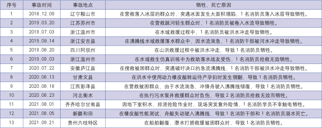 2018 年—2021 年消防隊伍水域救援傷亡情況統計
