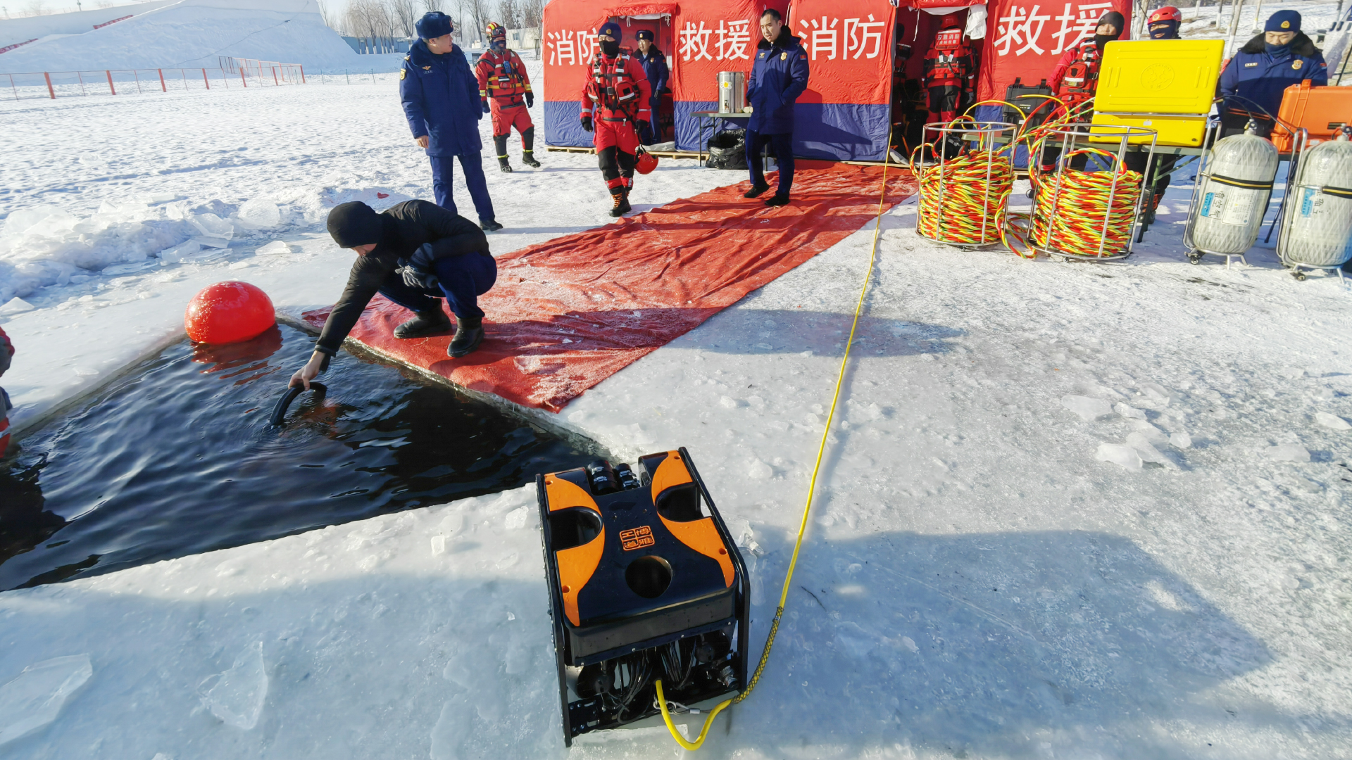 R-30配備了水下高清攝像頭、強(qiáng)照明系統(tǒng)及高精度探測(cè)傳感器,能夠在冰下復(fù)雜環(huán)境中進(jìn)行清晰觀測(cè)與精準(zhǔn)定位,為救援人員提供了寶貴的水下視野和數(shù)據(jù)支持,有效輔助了消防救援隊(duì)伍進(jìn)行救援行動(dòng)。R-30出色的表現(xiàn)不僅驗(yàn)證了博雅工道水下機(jī)器人在極端條件下的實(shí)戰(zhàn)應(yīng)用能力,更為長(zhǎng)春市消防救援支隊(duì)打造專業(yè)冰域救援隊(duì)伍提供了有力保障。