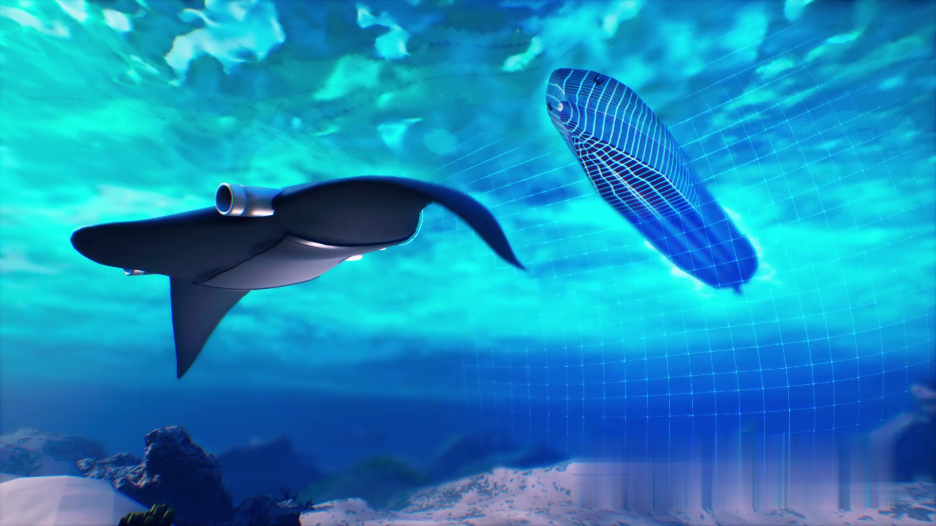 BM-1800“蝠鲼”型仿生機(jī)器人的水下效果圖