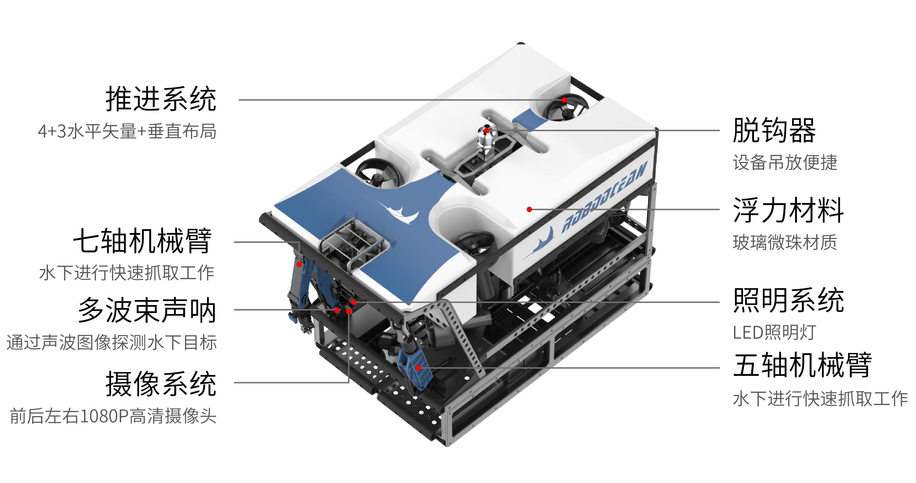R-3T是一款國產化重型水下機器人產品,摒棄傳統液壓能源系統,采用全電驅動力方案,實現國產化重型ROV技術突破,是未來海洋工程、海上可靠任務的有力助手。