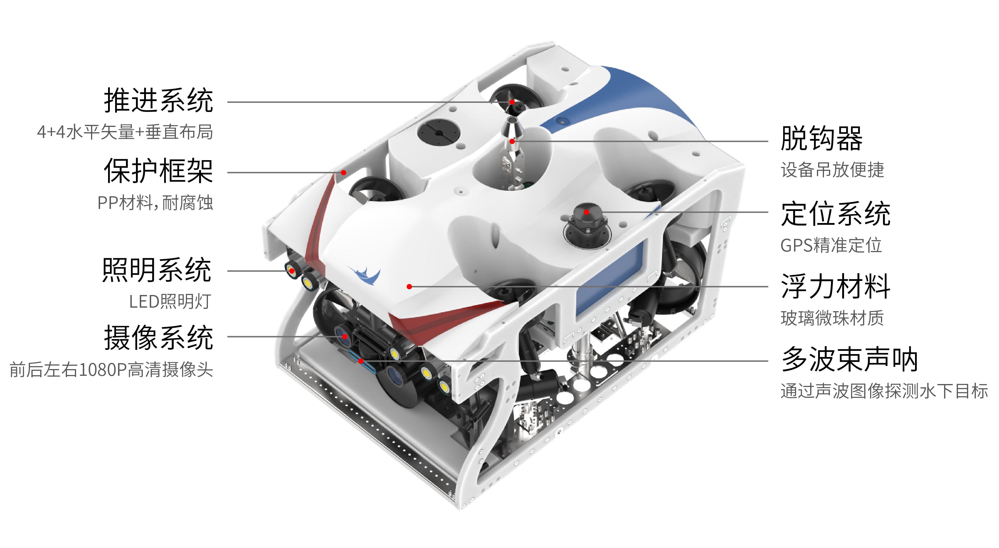 觀測級水下機器人靈活易布放,應用場景多樣。可以滿足大部分水下場景的檢測探測需求。也可以在應急救援等領(lǐng)域輔助進行簡單的抓取打撈等作業(yè)。