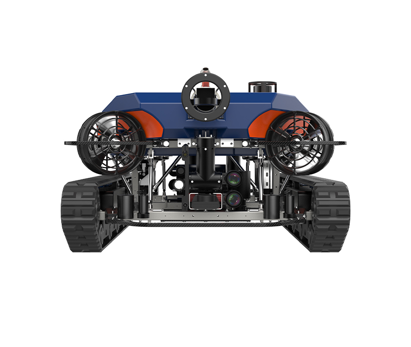 A-400針對(duì)水電站、水庫(kù)、海上風(fēng)電等復(fù)雜環(huán)境下檢測(cè)作業(yè)需求設(shè)計(jì)。浮游-爬行雙模式可靈活切換,能夠?qū)崿F(xiàn)水下多自由度浮游和吸附爬行運(yùn)動(dòng)。整機(jī)采用低阻式設(shè)計(jì),搭載大功率推進(jìn)系統(tǒng)和履帶式爬行結(jié)構(gòu),抗流能力可達(dá)4節(jié)。適用于復(fù)雜環(huán)境下日常例行水下大范圍缺陷檢查、定位及尺寸數(shù)據(jù)記錄等工作。