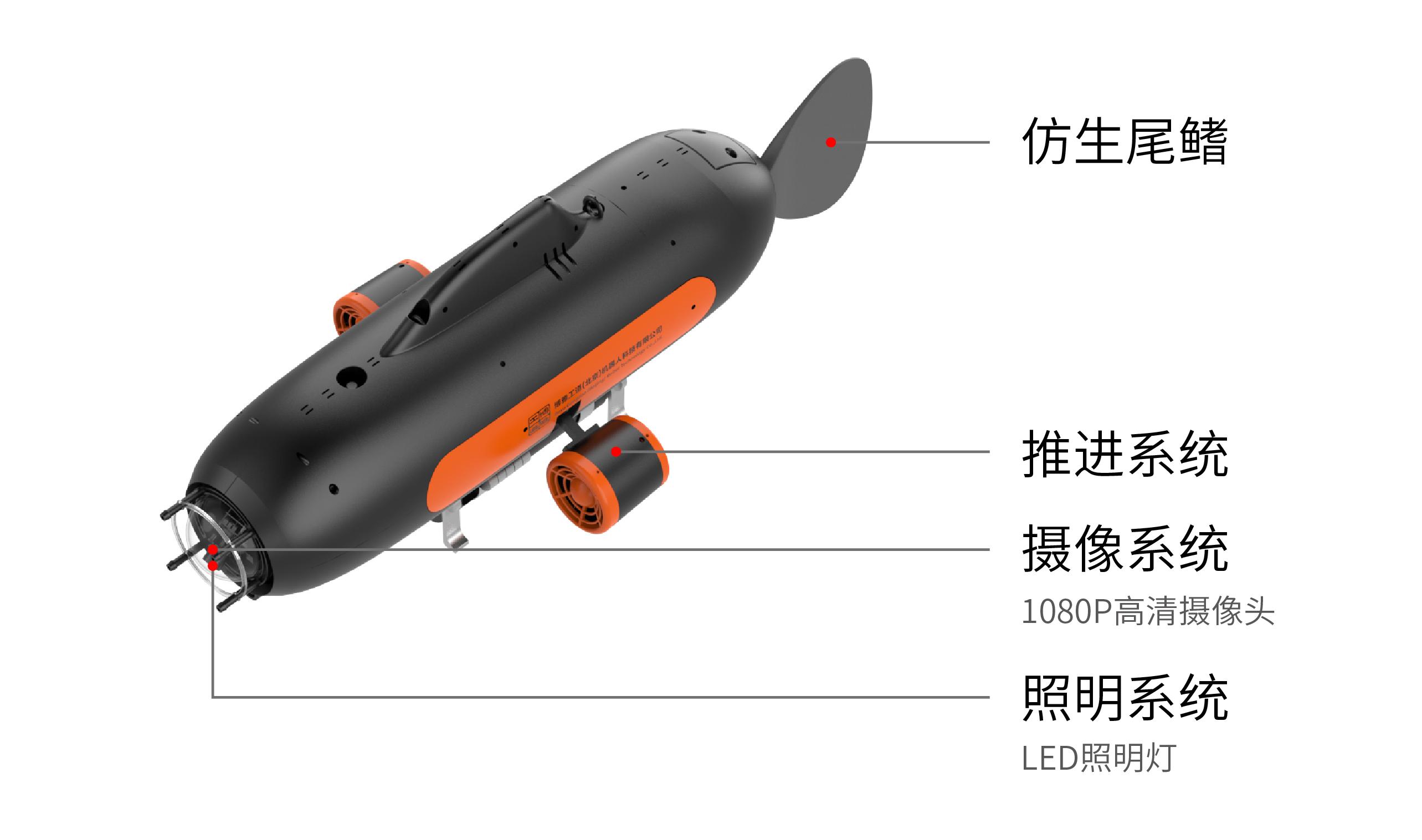 H-40混動型仿生機器人是一款采用仿生魚尾與推進器混合驅動的水下平臺。此平臺支持搭載多種不同外部設備實現多種使用功能,例如實時在線水質傳感器、水質采樣艙、水聲通信和水聲定位等。
