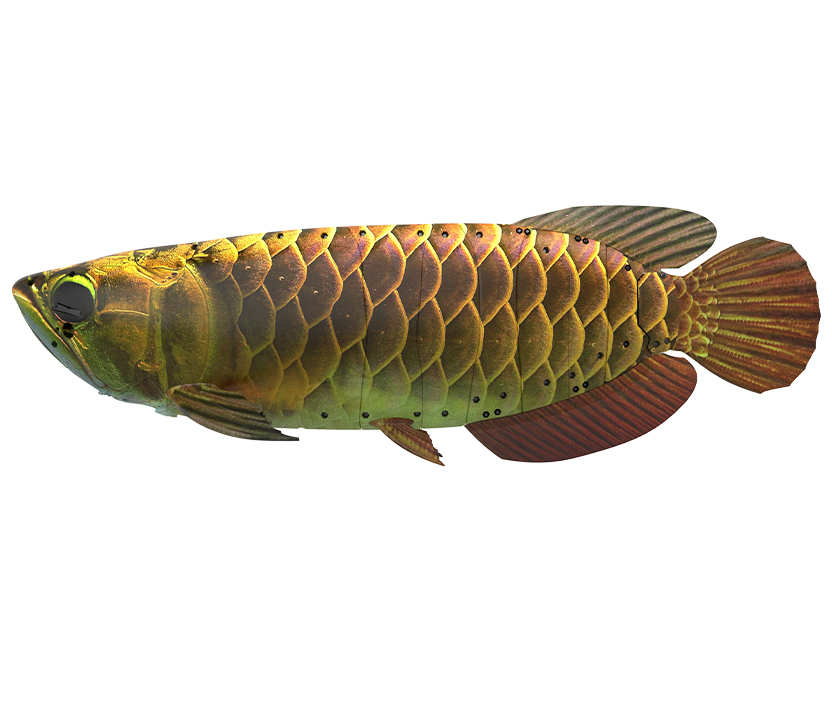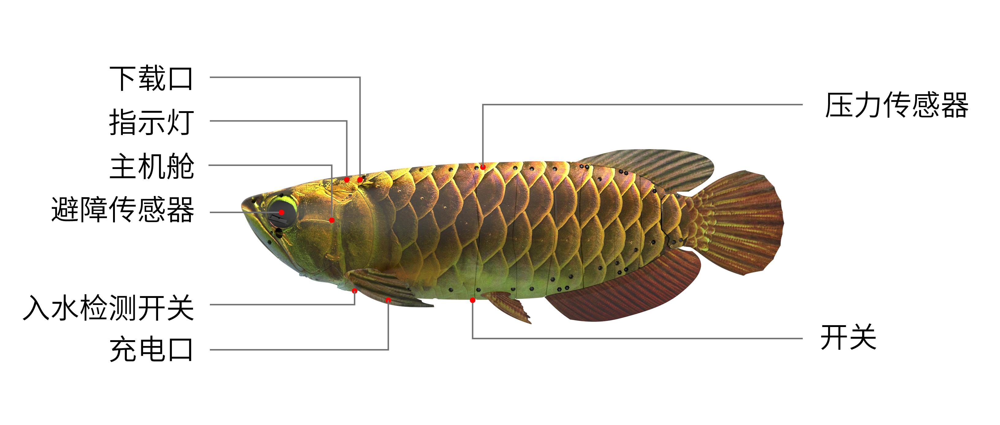 BG-5是一款多關節機器人產品,該產品根據龍魚游動姿態和外觀設計樣式,依托現有流體仿真技術設計。能夠像真魚一樣順暢優雅的自如游動,達到以假亂真的效果。