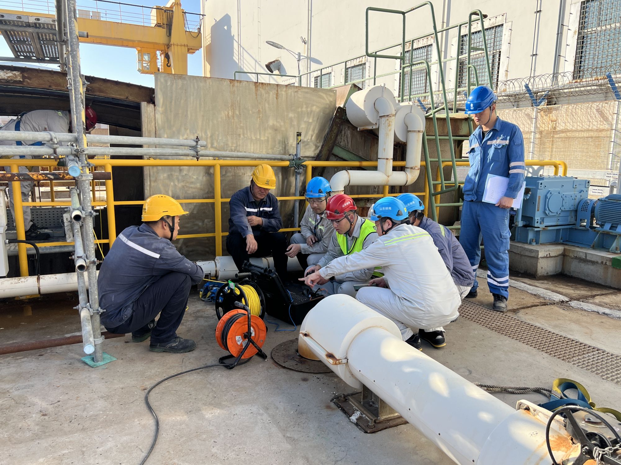 在人力無法完成工作、檢查窗口緊的雙重壓力下,維修支持處通過詳細的論證比選后,編制出了專項操作方案,巧妙利用鼓網網片拆除旋轉創造探測空問及路徑,并聯系到了博雅工道,公司高度重視,當天召開緊急會議并協調人員設備。